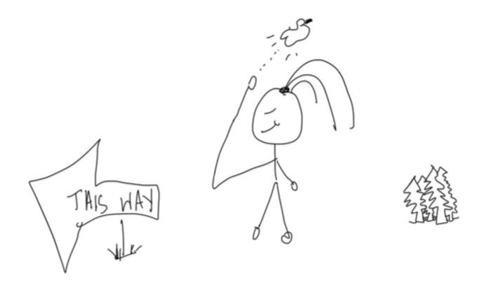 in shame, running away,
